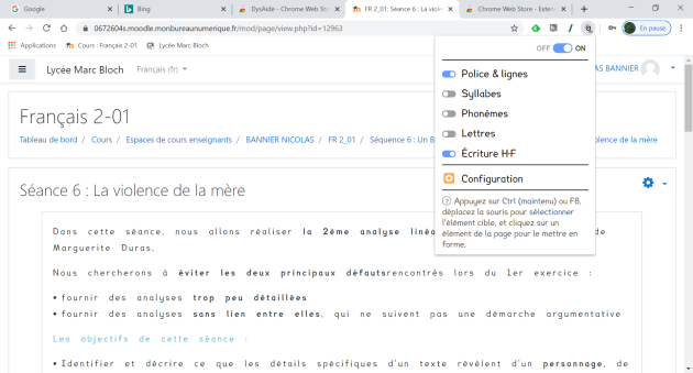 Par exemple, l'extension pour Chrome Aidodys Free permet aux élèves d'adapter le texte à leurs besoins.