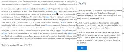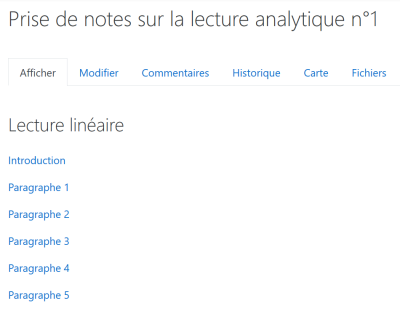 Dans le cadre du cours de français, en 1ère, Moodle a été utilisé comme un classeur collectif de la classe grâce à l'activité Wiki.