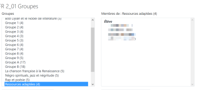Il commence par créer dans son cours un groupe d'élèves auxquels il souhaite donner accès au document adapté.